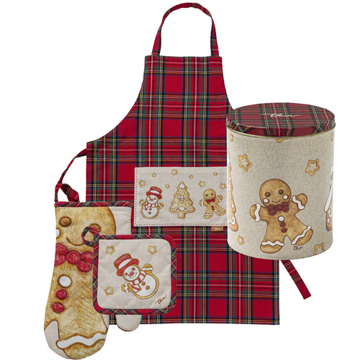 L'articolo è composto da una confezione regalo (barattolo in latta utilizzabile in cucina) con grembiule, presina e guantone.