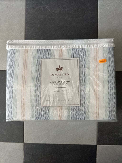 Dettagli Completo letto in Flanella di 100% cotone by Amo La Casa. Il set comprende lenzuolo sopra, sotto con angoli e coppia di federe. NO PELLI...