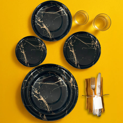 Details Porcelain plate set for setting the table for 6 people with colorful and lively decorations. Includes 6 soup plates, 6 dinner plates an...